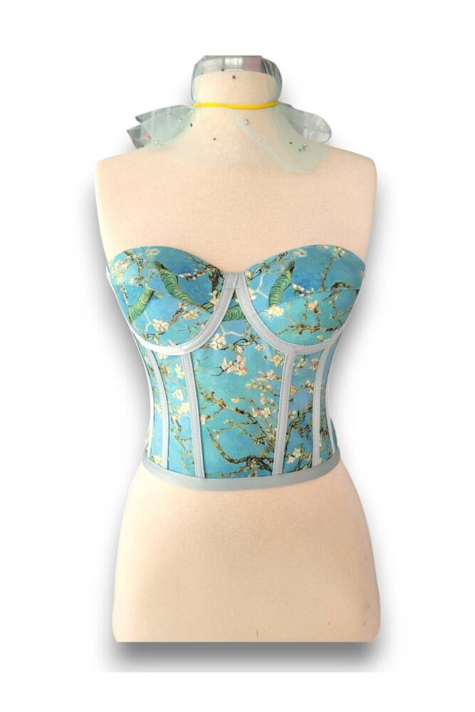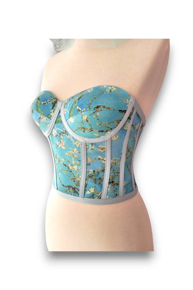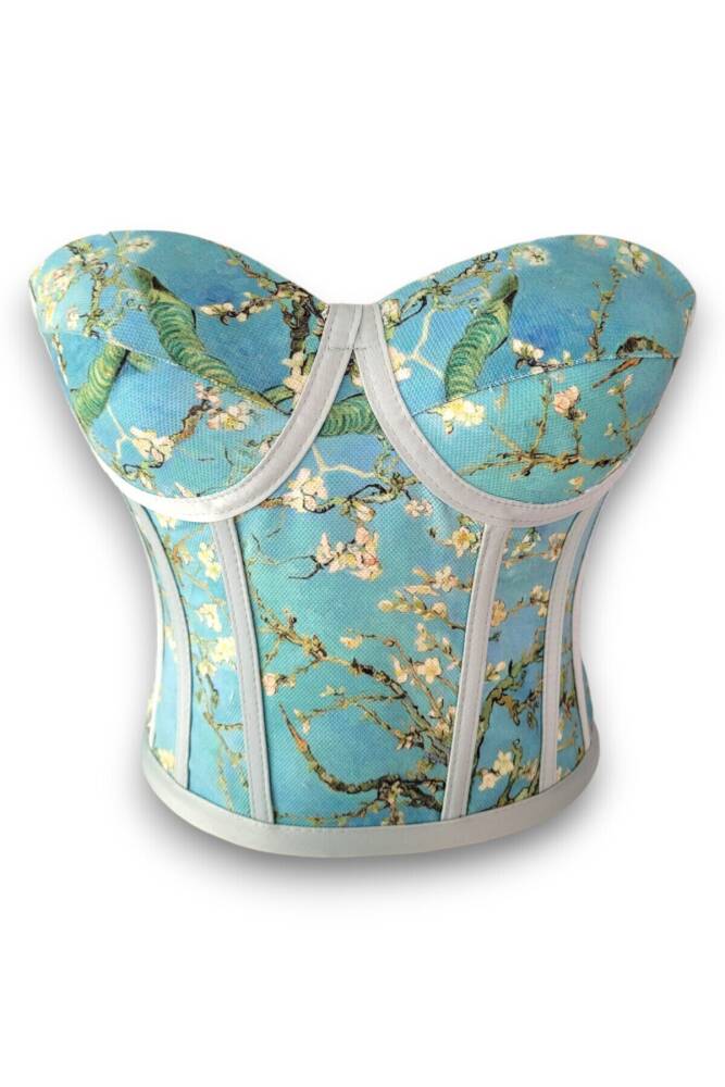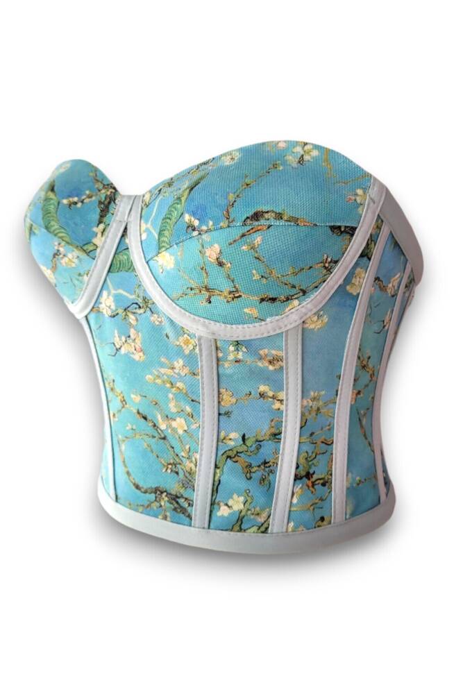 - Badem ağacı deseniyle şıklığı ve doğallığı bir arada sunan bu büstiyer, her ortamda dikkat çekici bir görünüm sağlar.; - Crop kesimi ile modern ve dinamik bir siluet oluştururken, bağlama detayları feminen bir dokunuş katmaktadır.; - Tüm sezonlarda rahatlıkla tercih edilebilen bu ürün, mevsim geçişlerinde de konfor sunar.; - Dikme kap özelliği sayesinde destekleyici bir yapıya sahiptir; böylece gün boyu rahatlık hissi yaşatır.; - Bağcıklı kapama şekli ile kişisel zevke göre ayarlama imkanı tanırken, desenli tasarımıyla göz alıcı detaylar ekler.; - Design koleksiyonuna ait bu büstiyer, özel günlerinizde veya günlük kombinlerinizde fark yaratmanız için idealdir.; - Balen detayları sayesinde göğüs bölgesini nazikçe kaldırarak daha dolgun bir
