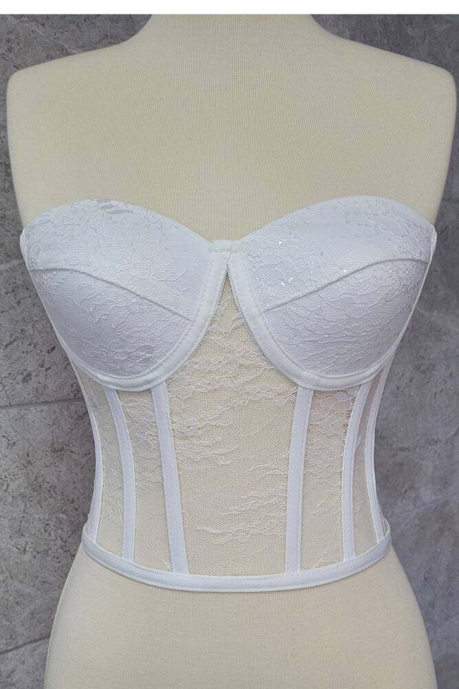 Zarif beyaz renk, şıklığınızı ön plana çıkarır.; Straplez tasarımı ile omuzları serbest bırakarak feminen bir siluet sunar.; Saten dokuması, pürüzsüz ve lüks bir his verirken teninizde kayganlık sağlar.; Bağcıklı kapama mekanizması sayesinde kişisel konforunuzu artırır ve mükemmel uyumu yakalamanızı kolaylaştırır.; Omzu açık kesimi ile sofistike ve modern bir görünüm kazandırır.; Düz deseniyle sade ve zamansız bir tarz sunarken, balenli yapısı destekleyici konfor sağlar.; Gece şıklığınıza eşlik edecek design koleksiyonunun parçası olarak dikkat çeker.; Crop boy kesimiyle modern ve trend bir görünüm sunarken, dikme kap detayıyla güvenli bir kullanım imkanı tanır.;