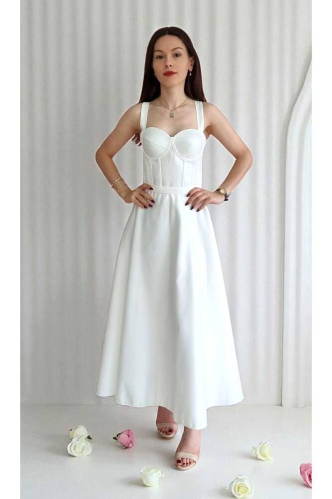 - Zarif saten dokusuyla göz alıcı bir görünüm sunar, tüm sezonlarda şıklığınızı korumanızı sağlar.; - Kemer detayı ile belinizi vurgulayarak feminen bir siluet oluştururken, kolsuz tasarımı modern ve sofistike bir hava katmaktadır.; - Kuru temizleme önerisiyle uzun ömürlü kullanım vaat eder; böylece elbisenizin ilk günkü gibi kalmasını sağlayabilirsiniz.; - Bağcıklı kapama şekli sayesinde kişisel zevkinize göre ayarlama imkanına sahip olursunuz.; - Cepsiz yapısıyla minimalist tasarım anlayışını benimserken, straplez yaka tipi omuzları ön plana çıkarır.; - Saten kumaşı yumuşak dokusuyla konforlu bir deneyim sunarken, örme kumaş tipi esneklik kazandırır.; - Türkiye menşeli olmasıyla yerel üretim avantajlarından faydalanırken, slim kalıp vücut