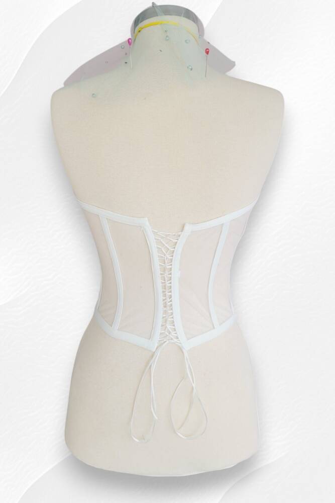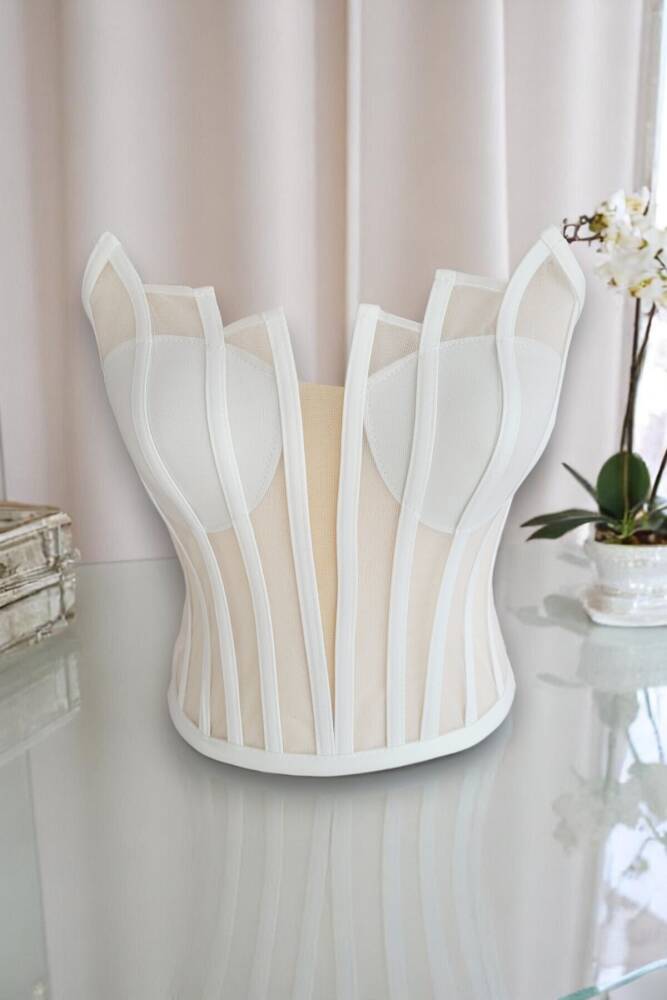 Beyaz Transparan Balenli Korse Büstiyer Gelinlik Hazır Beden