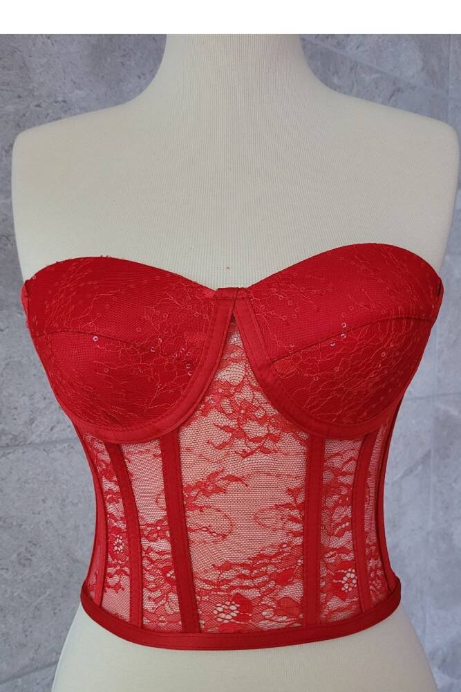 - Saten dokusuyla zarif bir görünüm sunan kırmızı renkli büstiyer, şıklığınızı ön plana çıkarır; - Gece davetlerinden özel anlara kadar her ortamda rahatlıkla tercih edebileceğiniz bu büstiyer, tüm yaş gruplarına hitap eder; - Bağcıklı kapama şekli sayesinde kişisel konforunuzu artırırken, balen detayı ile mükemmel bir destek sağlar; - Dokuma kumaş tipi, dayanıklılığı ve yumuşak dokusuyla uzun süreli kullanım için idealdir; - Straplez kalıbı ile omuzları serbest bırakarak feminen bir siluet oluştururken, crop boy kesimi modern ve şık bir görünüm sunar;