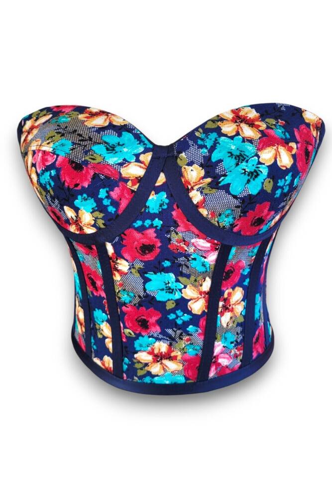 - Zarif çiçek desenleriyle süslenmiş, feminen bir görünüm sunan lacivert viskon büstiyer.; - Pratik dikme kap özelliği ile konforlu kullanım sağlar ve vücut hatlarınıza mükemmel uyum sağlar.; - Kuru temizleme önerisiyle kolayca bakım yapılabilir; böylece ürününüz uzun süre ilk günkü gibi kalır.; - Her mevsim tercih edebileceğiniz tasarım, gardırobunuzda çok yönlülük kazandırır.; - persona'ya hitap eden bu parça, özel anlarınızda şıklığınızı tamamlar.; - Bağcıklı kapama şekli sayesinde kişisel zevkinize göre ayarlama imkanı sunar.; - Balen detayları ile göğüs bölgesini desteklerken, zarif bir siluet oluşturur.; - Bağcıklı kapama sistemiyle hem rahatlık hem de estetik bir dokunuş katmaktadır.; - Desenli yapısıyla göz alıcı bir stil yaratırken
