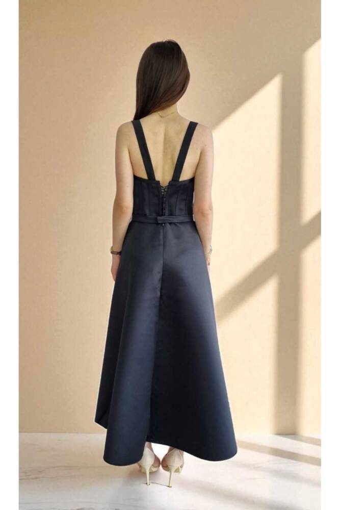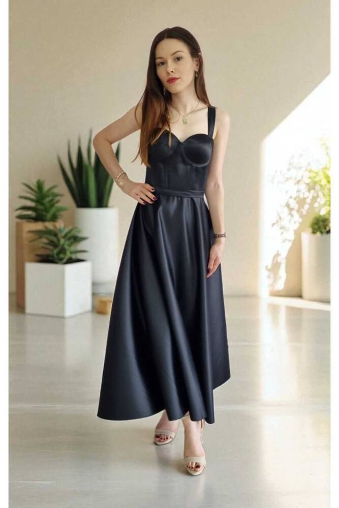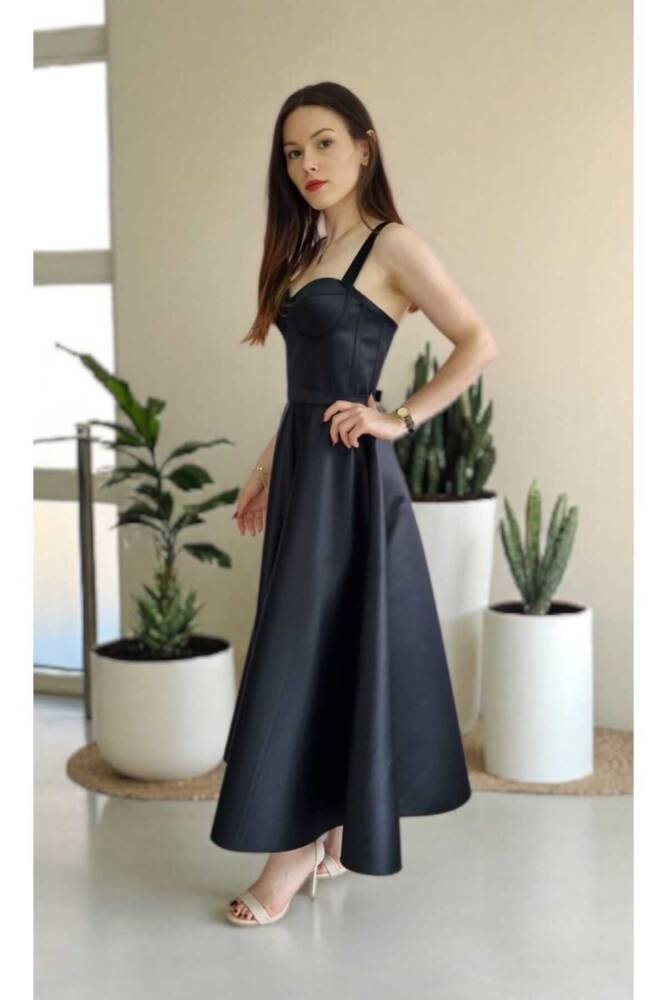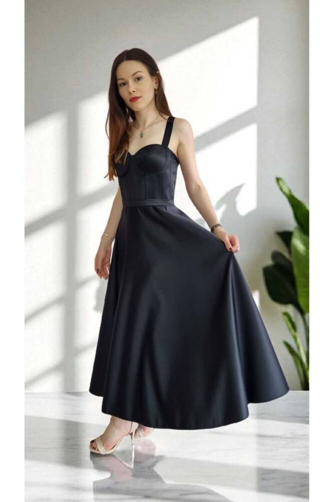 - Zarif saten dokusu ile göz alıcı bir görünüm sunar ve tüm sezonlarda şıklığınızı korumanızı sağlar.; - Kemer detayı sayesinde belinizi vurgulayan bu elbise, feminen hatlarınızı ön plana çıkarır.; - Cepsiz tasarımı ile modern ve minimalist bir tarz sergilerken, saten kumaşı lüks hissiyatını artırır.; - Bağcıklı kapama şekliyle kişisel konforunuzu ayarlamanız mümkündür; böylece her zaman mükemmel oturuşa sahip olursunuz.; - Kolsuz yapısıyla yaz aylarında serinlik sağlarken, straplez yaka tipiyle de omuzlarınızı zarifçe sergiler.; - Midi boyu sayesinde hem rahat hareket etme özgürlüğü sunar hem de şık bir duruş sergiler.; - Düz deseniyle sadelikten yana olanların tercihi olup, farklı aksesuar kombinasyonlarıyla kolayca kişiselleştirilebilir.