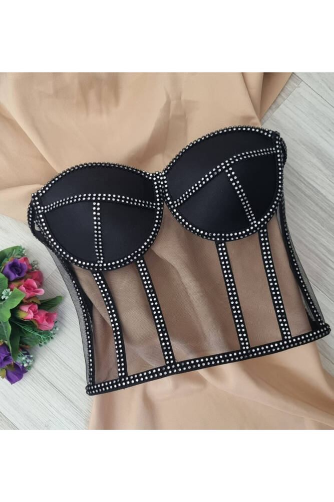 Gece şıklığınızı tamamlayacak siyah transparan korse büstiyer, zarif kristal boncuk süslemeleriyle göz alıcı bir görünüm sunar; Bağcıklı kapama şekli sayesinde rahat bir kullanım sağlar ve kişisel konforunuzu artırır; Straplez kalıbı ile omuzları serbest bırakarak feminen bir siluet oluşturur ve bronzlaşmayı kolaylaştırır; Saten dokuma tipi, pürüzsüz ve parlak bir yüzey sunarak cildinize nazikçe dokunur; Crop boy kesimiyle modern ve şık bir görünüm kazandırırken, vücut hatlarınıza mükemmel uyum sağlar; Balen detayı ile göğüs bölgenizi şekillendirir ve daha dolgun bir görünüm elde etmenize yardımcı olur; Dokuma kumaş tipi dayanıklılığı artırarak uzun süreli kullanım imkanı sunar; Düz ürün tipi, sade ve zamansız tasarımıyla her türlü kombinin