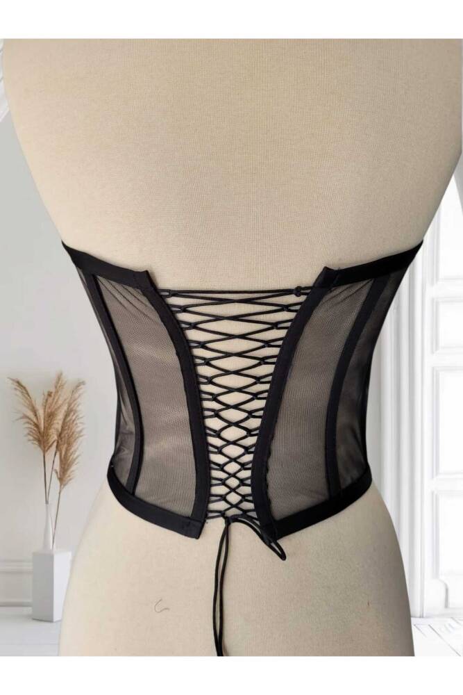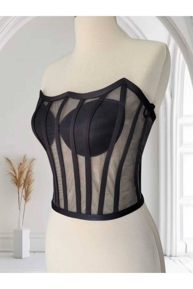 Şık ve gece ortamları için ideal, transparan tasarımı ile göz alıcı bir görünüm sunar.; ; Crop boy kesimi sayesinde modern ve dinamik bir siluet oluşturur.; ; Design koleksiyonunun özgün çizgilerini yansıtan bu büstiyer, stil sahibi kadınların tercihi olacak ; Dokuma kumaş tipi, dayanıklılığı artırarak uzun süreli kullanım imkanı tanır.; ; Düz deseniyle sade ama etkili bir stil sergiler; her tür aksesuarla kolayca kombinlenebilir.; ; Balen detayları sayesinde vücut hatlarınıza mükemmel uyum sağlar, kusursuz bir siluet oluşturmanıza yardımcı olur.; ; Bağcıklı kapama şekli ile kişisel konforunuzu arttırırken, istediğiniz gibi ayarlama imkanı verir.; ; Gece stilinizi tamamlayacak straplez yaka tasarımı ile feminenliğinizi ön plana çıkarın.; ;