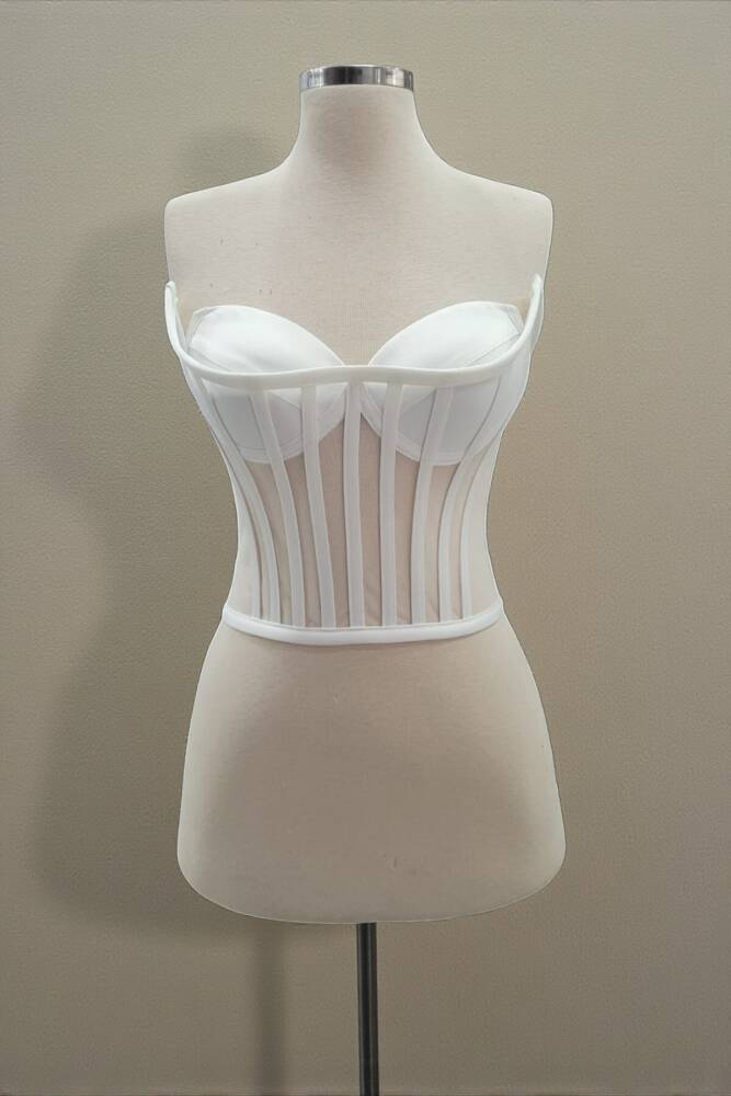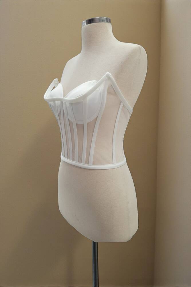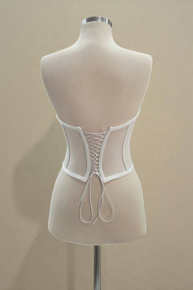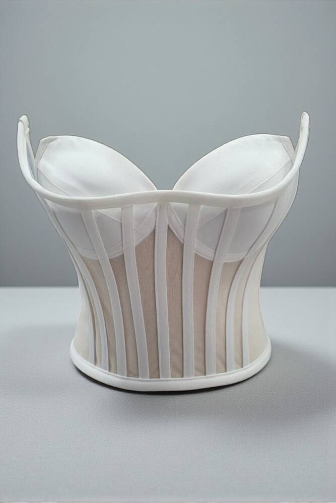 - Balenli tasarımı sayesinde vücut hatlarını belirginleştirir ve destek sağlar.; - Transparan yapısı ile şeffaf bir görünüm sunar, gelinlik altında zarif bir dokunuş yaratır.; - Hazır beden seçeneğiyle kolayca uyum sağlar ve pratik bir kullanım sunar.; - Beyaz rengi ile klasik ve zamansız bir görünüm elde edilir.;