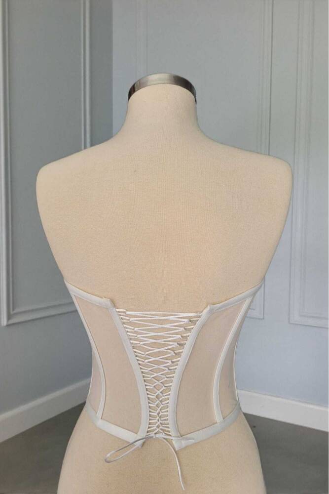 Transparan Balenli Korse Büstiyer Gelinlik Hazır Beden Beyaz