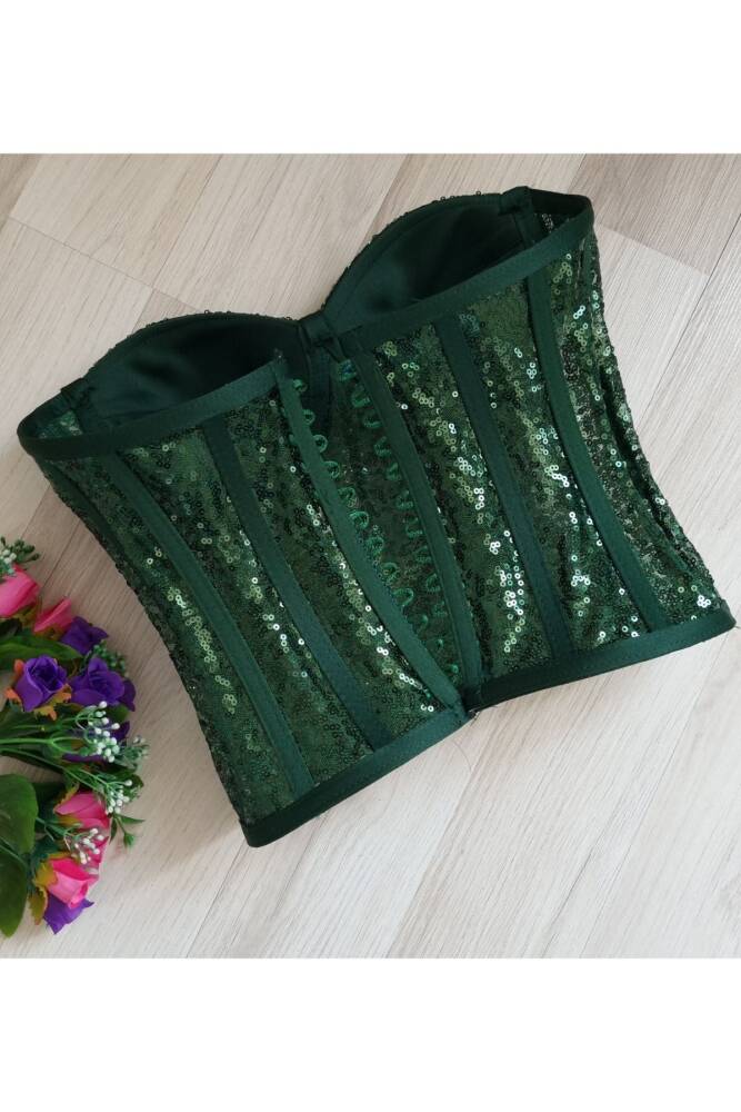 Straplez tasarımı ile omuzları serbest bırakarak feminen bir siluet sunar; Crop kesimi sayesinde modern ve şık bir görünüm sağlar; Düğün ve nikah gibi özel günler için ideal bir seçimdir; Bağcıklı kapama şekli ile kişisel konforunuzu artırırken, zarif bir detay ekler; Pullu deseniyle göz alıcı bir parlaklık ve sofistike bir dokunuş sunar; Saten materyali, pürüzsüz ve yumuşak bir hissiyat verirken, şıklığıyla ön plana çıkarır; Her yaş grubuna hitap eden tasarımıyla geniş bir kullanıcı yelpazesine sahiptir; Gece stilini tamamlayacak şekilde tasarlanmıştır; ışıltılı ve gösterişli etkinlikler için mükemmeldir; Dokuma kumaş tipi dayanıklılığı artırırken, kaliteli hissiyatını korur; Sabit kap yapısıyla rahatlık ve destek sağlar; Straplez kol tipi